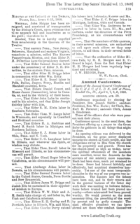 This electronic publication copyright © 2020 LatterDayTruth.org; All Rights Reserved.The 1868 Annual General Conference was held April 6-9 at Plano, Illinois, USA.