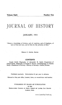This electronic publication copyright © 2012 LatterDayTruth.org; All Rights Reserved.Includes Autobiography of John J. Cornish, History of education in the Church of Jesus Christ of Latter Day Saints, Journal of Ethan Barrows, Local historians, Necrology, Plat of Kirtland, Ohio recorded in 1837, Plat of Nauvoo, Illinois surveyed in 1839-40, and many more articles.